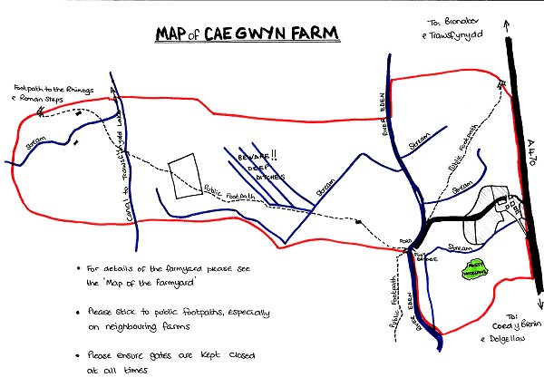 Below is a map of Cae Gwyn Farm, followed by a more detailed map of the farmyard.
