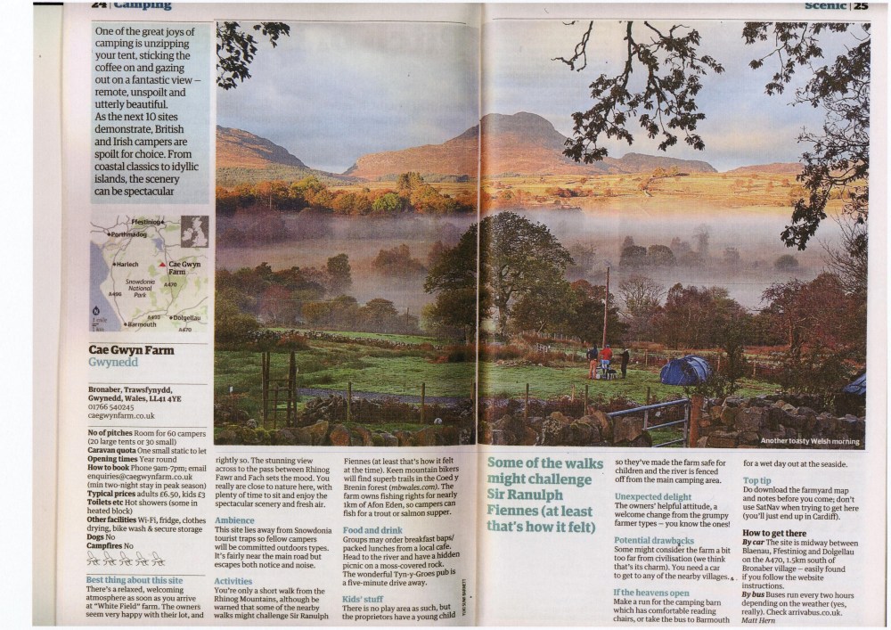 Reviews of Cae Gwyn Farm from 'The Guardian' camping guides